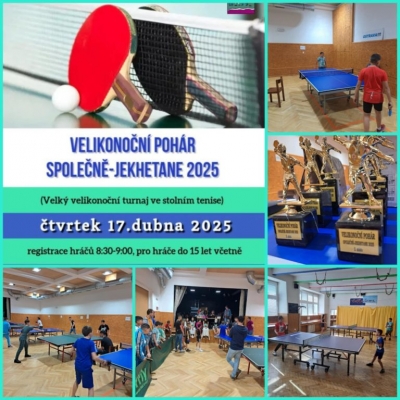 10.12.2024Více informací...Na Zelený čtvrtek 28.3.2024 pořádá naše organizace SPOLEČNĚ-JEKHETANE, o.p.s., Velikonoční pohár.