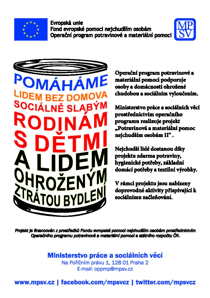 SPOLEČNĚ-JEKHETANE, o. p. s. spolupracuje dlouhodobě s Potravinovou bankou v Ostravě, z. s. a také s Potravinovou bankou v Olomouckém kraji, z. s. Na základě této spolupráce získáváme zdarma potraviny, drogérii a jiné věci denní spotřeby, které dále darujeme potřebným lidem.Co musíte vědět o potravinové a materiální pomoci?