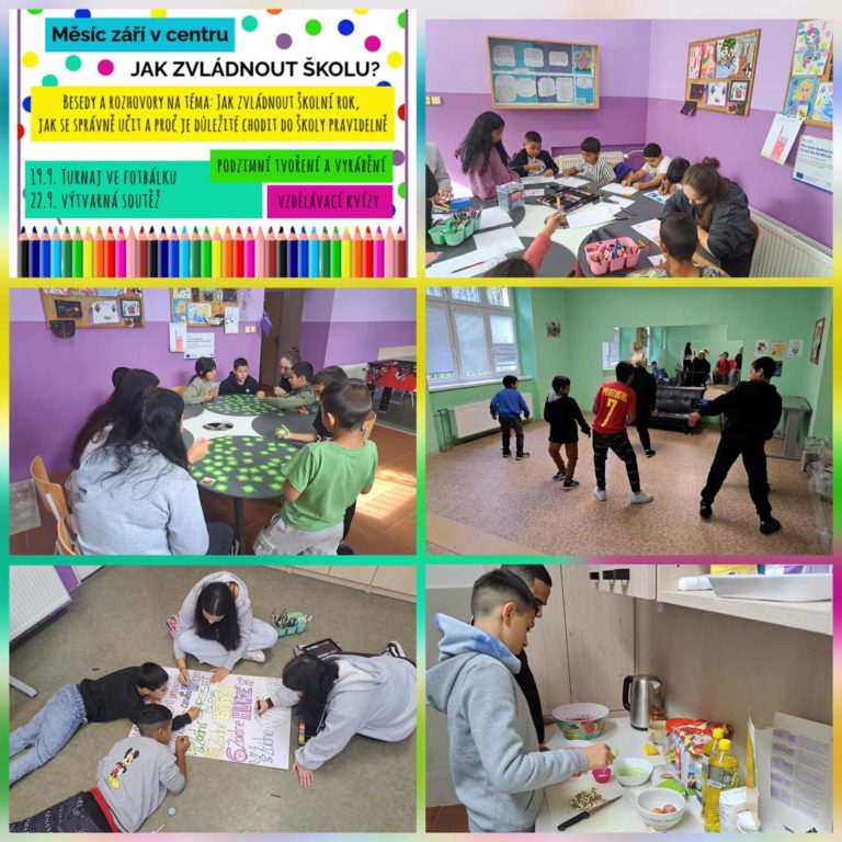 Měsíc září byl v našem nízkoprahovém zařízení zaměřen na přípravu dětí na právě začínající školní rok. Pracovníci si s dětmi společně povídali o pravidelné školní docházce, o tom, co děti ve škole čeká, a jak se připravovat na vyučování. Kromě školních aktivit pracovníci nabídli dětem a mládeži pestrý program – proběhl turnaj ve stolním fotbálku a také výtvarná soutěž. Pracovníci si rovněž pro děti připravili vzdělávací kvízy, které se týkaly pravidel chování ve společnosti a také kvíz, který byl zaměřen na uvědomění si rizik spojených s kouřením elektronických cigaret.
