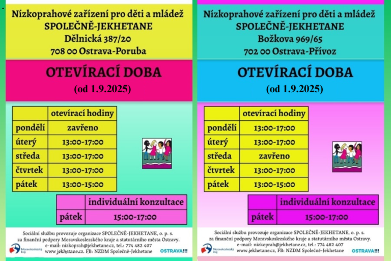 Od pondělí 1. 9. 2025 se vrací provozní doba na obou nízkoprazích do režimu školního roku následovně: